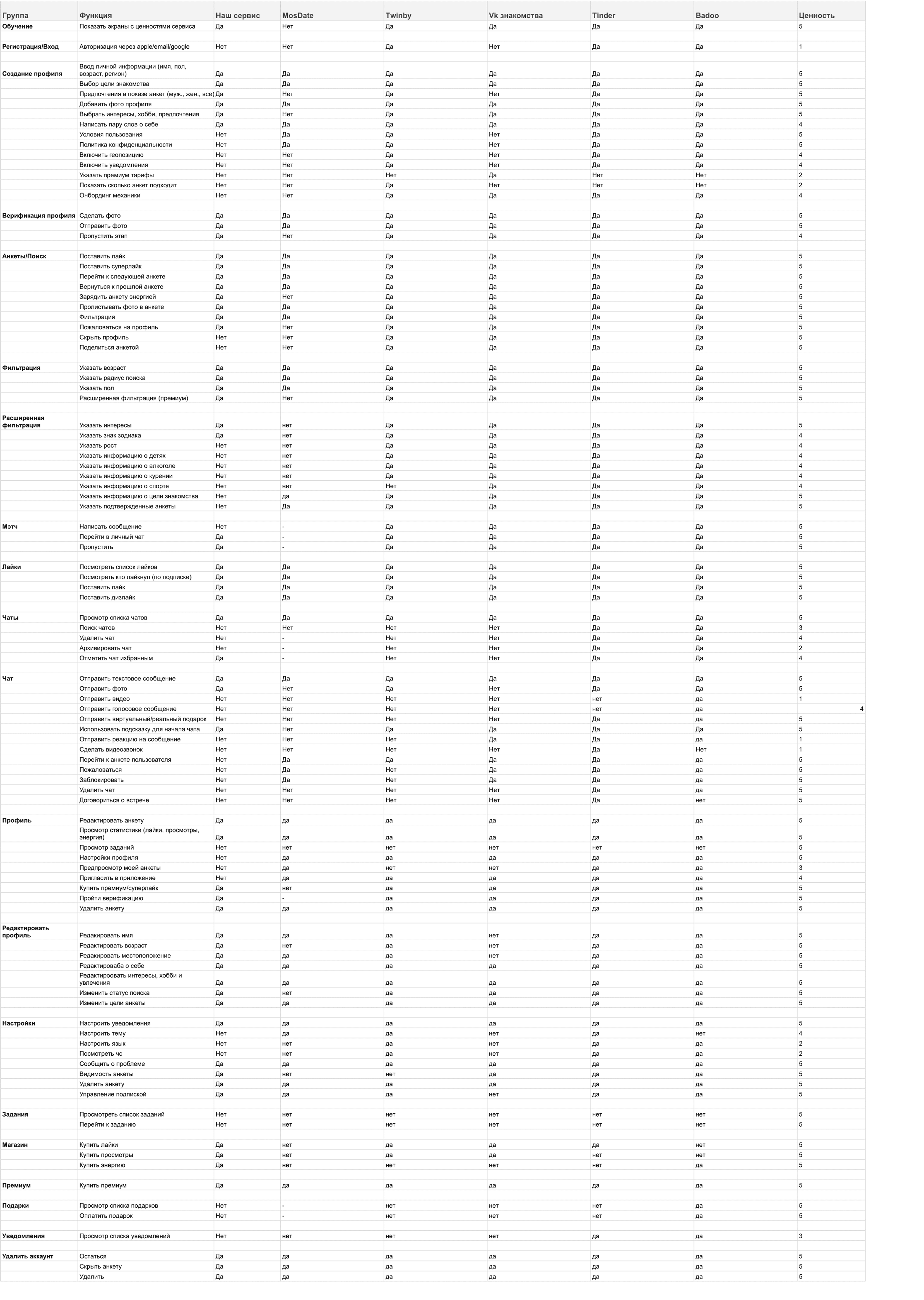 Соответствие общей индустрии для конкуренции с главными игроками дейтинга в СНГ