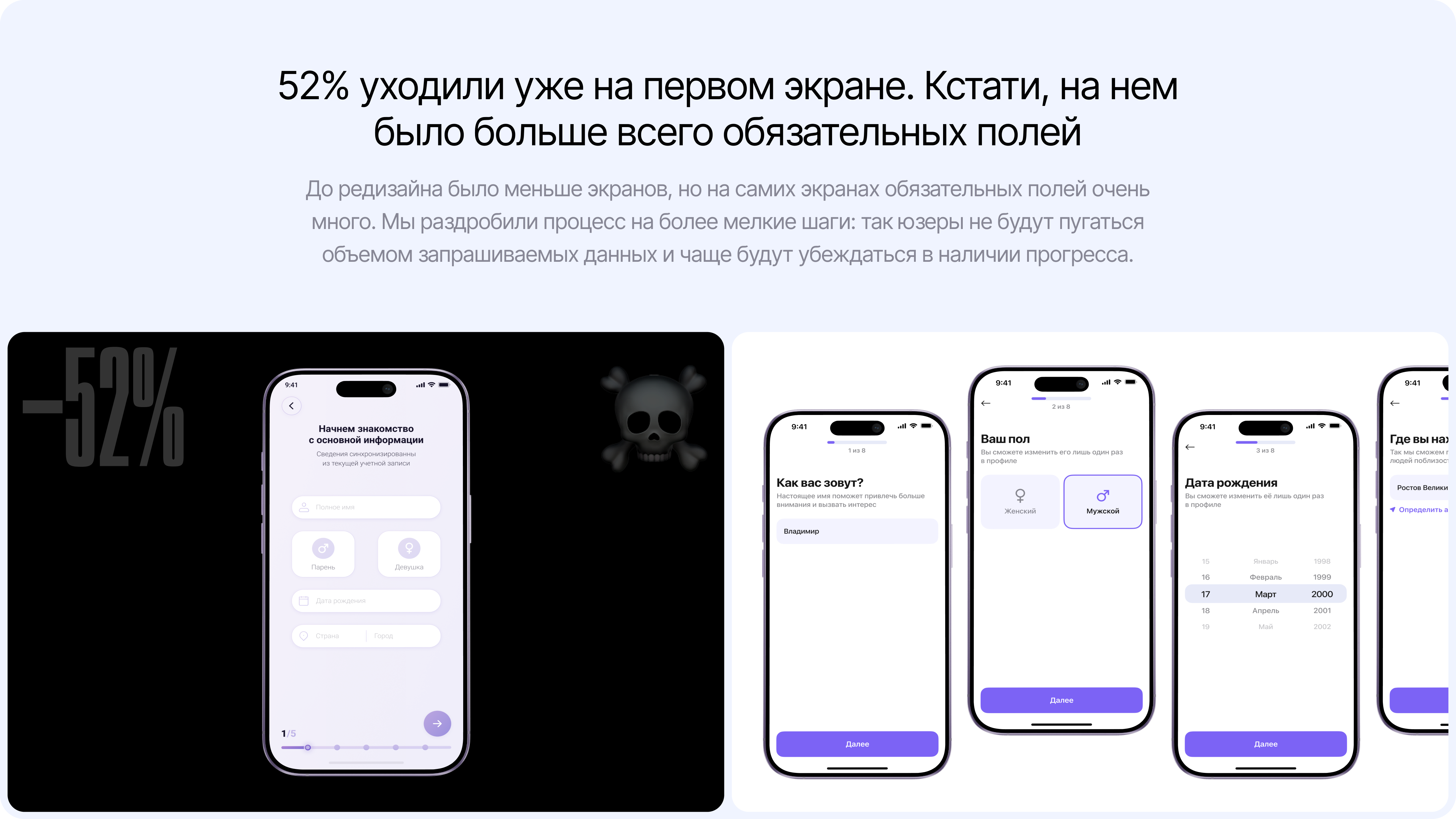 Пользователи навсегда закрывают приложение до создания анкеты. Полностью изменил подход к анкетированию, чтобы повлиять на нее.